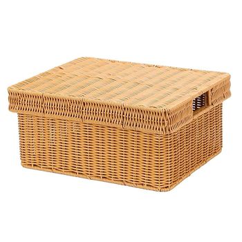 Hete Verkoop Vintage Geweven Picknickmand Stapelbare Zachte Rechthoekige Opslag Plastic Rotan Koffer Met Deksel Geschenkmand