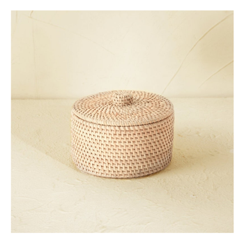 Rieten Rotan Geweven Mini Ronde Handgemaakte Bloemenmand Waterdichte Opbergmand
