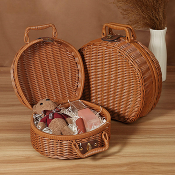 Nieuwe Ronde Plastic Rotan Opbergmand Geschenkverpakking Retro Geweven Koffer
